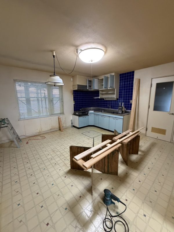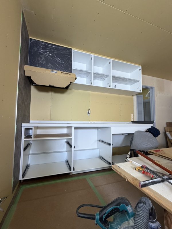 下のキッチンを固定し仕上げていきます。