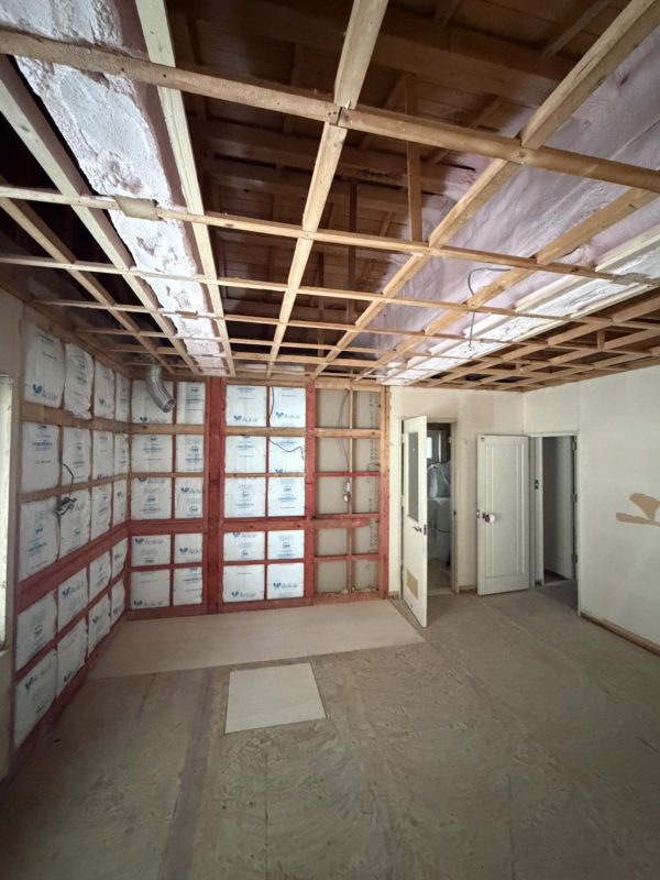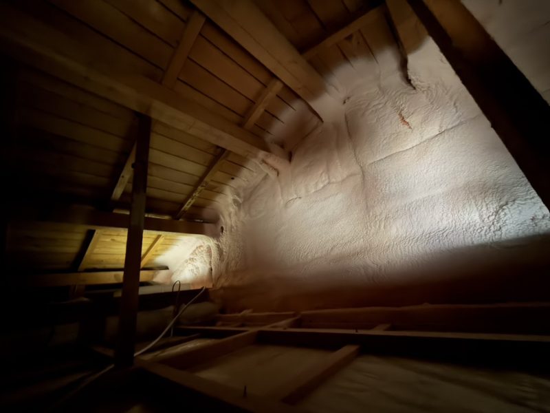 鉄骨梁にウレタンを施工させていただいた下屋部分にブローイング400㎜を施工
