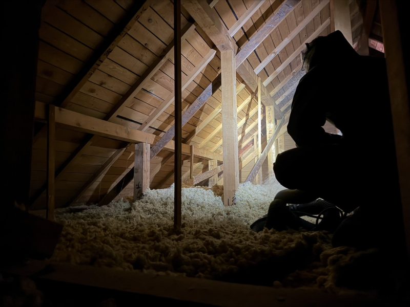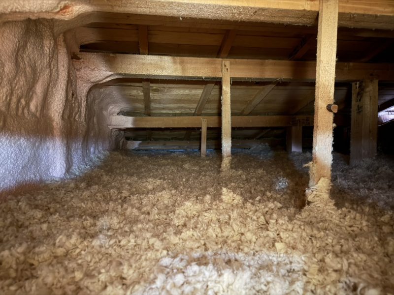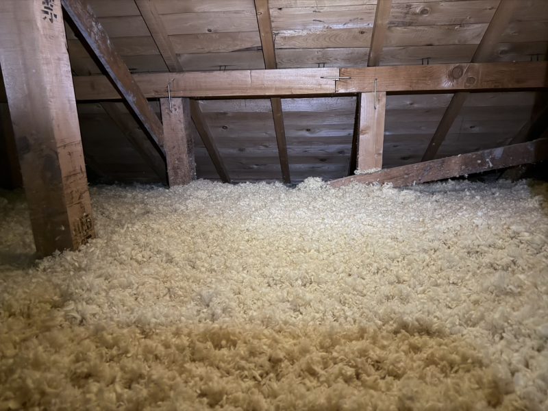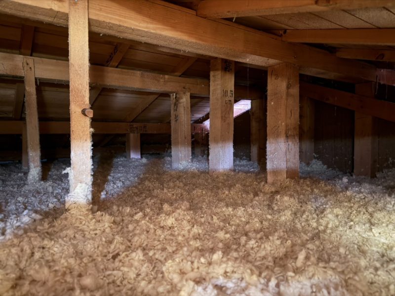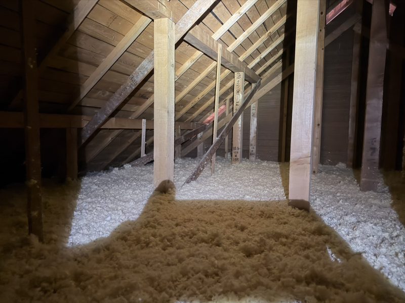 共に2階の小屋裏部分に既存の200㎜+付加断熱として200㎜増し吹きいたしました。